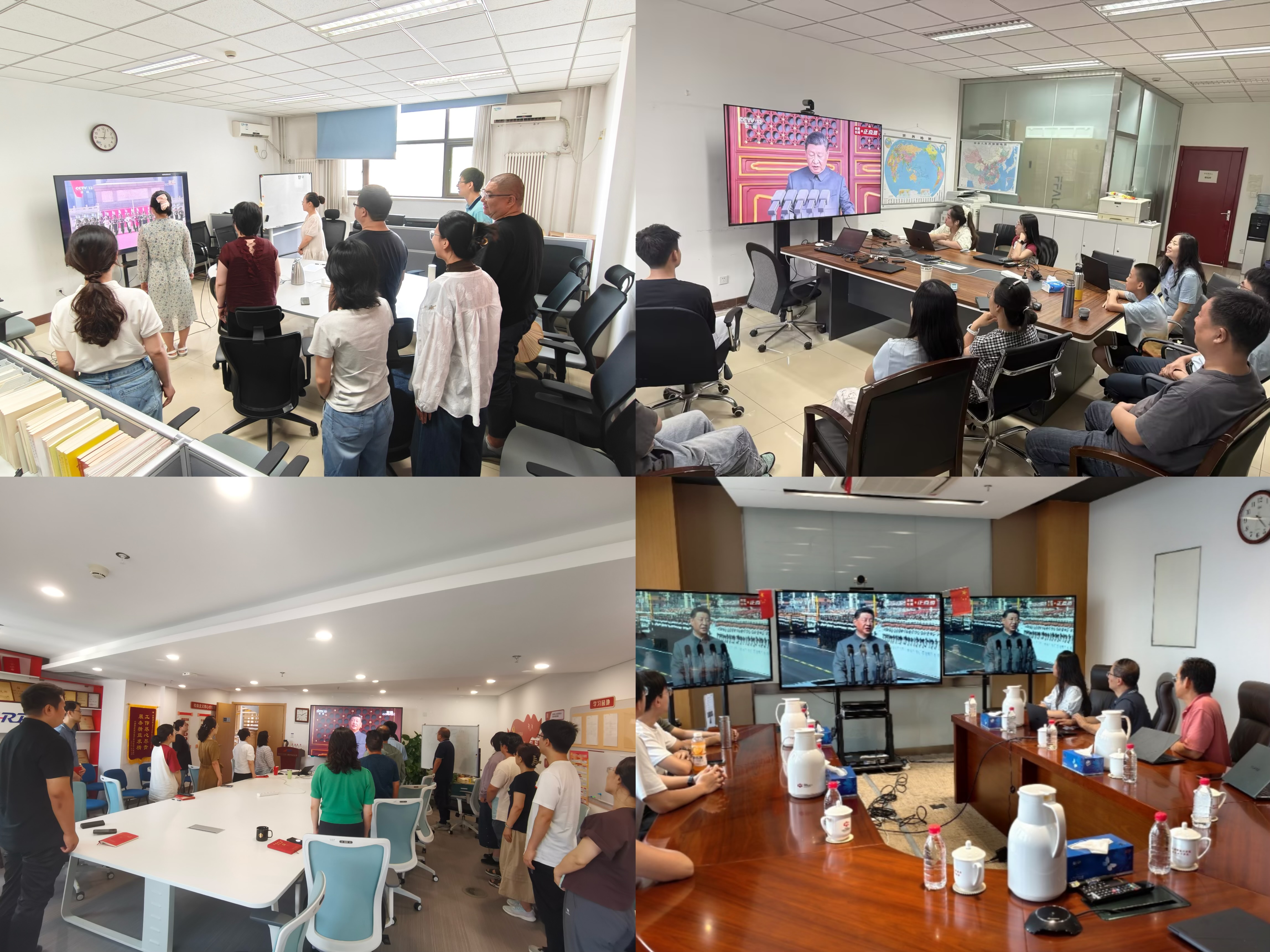 为铭记光辉历史、弘扬伟大抗战精神,进一步增强爱国主义情怀和历史责任感,9月3日上午,计算机网络信息中心各党支部组织集中收看了纪念中国人民抗日战争暨世界反法西斯战争胜利80周年大会现场直播。中心领导班子成员与大家一同观看,认真聆听了重要讲话。