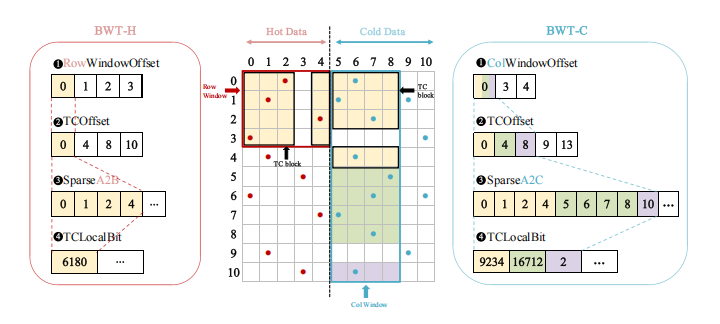 近日,我中心人工智能部研发了TAC框架,系统性地融合了数据亲和缓存填充算法(Affinity-aware Caching Initialization Algorithm,ACI)、稀疏性感知的混合矩阵存储格式(HybridMatrix)以及多层次细粒度训练流水线三大关键技术。TAC 通过提升缓存局部性有效降低全局通信开销,并借助 Tensor Core 高效加速稀疏矩阵计算。实验证明端到端性能相比其他框架显著提升。