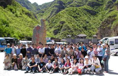 5月22日,肖作敏副书记带队,中心6个党支部(除老干部支部)的71名党员和入党积极分子参加了野三坡-百里峡-东湖港一日游的登山活动。