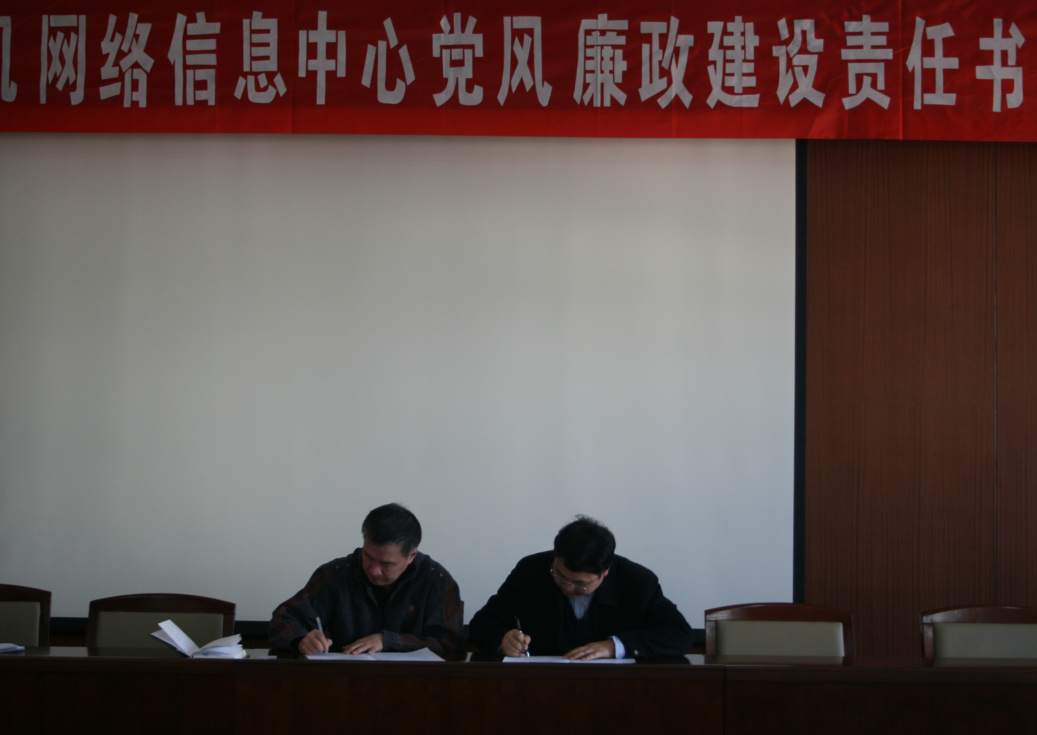 为深入贯彻落实党的十七大精神和党中央国务院《关于实行党风廉政建设责任制的规定》,根据院党组的要求和北京分院的部署,12月15日,计算机网络信息中心举行党风廉政建设责任书签订仪式。计算机网络信息中心党委书记、纪委书记、各职能处处长、各业务部门负责人、各党支部书记、公司总经理共计20余人参加仪式。签订仪式由网络中心纪委书记肖作敏主持。