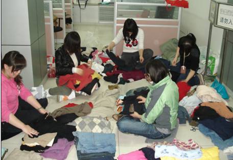 图1:工作小组整理同事们捐赠的衣物