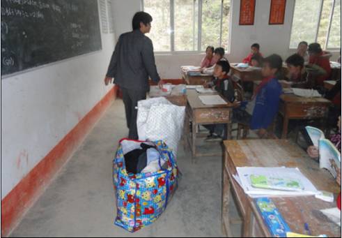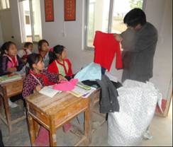 图3 衣物到达河池小学后的发放准备情况