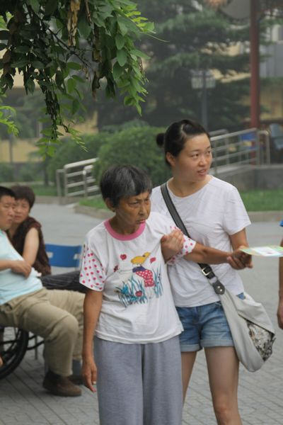 吉志霞说,有一位名叫幸福的男孩,已经两岁多了,但却不会说话。初见他时,他躺在婴儿车里,被绷带限制并保护着的他。他总是用两个小拳头在自己的脸上蹭着,不知道他想表达的是什么意思,我伸出手,握住他的两只小手,向他表示友好,希望这能成为我们交流的开始。后来,我和同伴一起推着幸福去了福利院的前院,有义工看到,就过来逗弄小幸福,从他咧着的小嘴上,我感觉到他真的是幸福的。还有一个叫建玲的福利院居民,是一个瘦的不能再瘦、个子小小的、看不出年龄的女人。听护工大姐介绍,她已经五十多岁了。她的年龄跟我母亲差不多,但只有3岁孩子的智商,满脸稚气。护工大姐让她喊我们“姐姐”。每当周末我们来到福利院时,总能听到她沙哑的叫喊声。若是第一次来,肯定会被吓一跳,见到我们,她总是使劲地拍我们。这是她表达高兴的方式。有时她还会用亲吻我们脸颊的方式表达高兴。