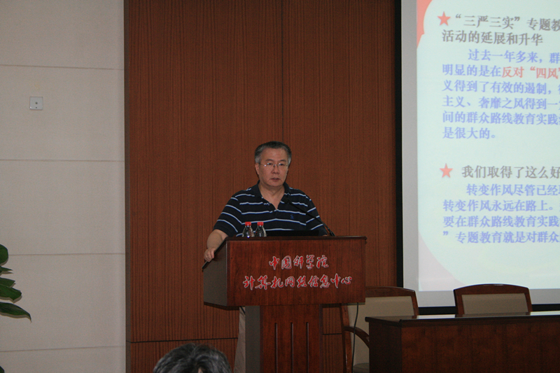 下午,网络中心党委书记陈浩按照“三严三实”专题教育的要求,给中心副处以上领导干部和支部委员、入党积极分子等39人做题为《坚持群众路线 践行“三严三实” 做一名新时期合格的党员干部》专题党课,从“三严三实”的重要意义和基本定位、“三严三实”的基本内涵和精神实质、“不严不实”的突出问题和网络中心开展“三严三实”专题教育实施方案等四个方面,结合网络中心实际,给参会人员上了一趟生动的党课。陈浩指出要把“三严三实”作为一种常态化融入到日常工作中去,要用党性约束人性,还指出做人既要有松树的品格,又要有柳树的风格。