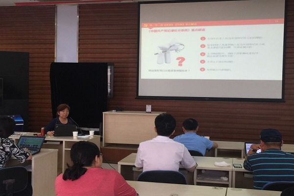 首先,由支部联系人、中心纪委委员陆忠华做了题为“坚持高标准守住底线——学习贯彻新《准则》新《条例》”的主题报告。陆忠华通过对《准则》和《条例》的修改背景和新《准则》和《条例》的重点解读,带领支部党员从国家到个人,由面及点,深入浅出的学习了党规。报告引起了参会党员的积极响应,支部书记肖云强调“两学一做”不应仅停留在“学”的层面,更应该在工作中践行于“做”中,新媒体党支部的党员同志应该起到模范带头作用,进而带动新媒体部的业务工作的发展。支部党员杜义华、黎文分别结合自己的工作,阐述了“两学一做”对推动部门发展,提高业务人员凝聚力和战斗力所起到的积极促进作用。