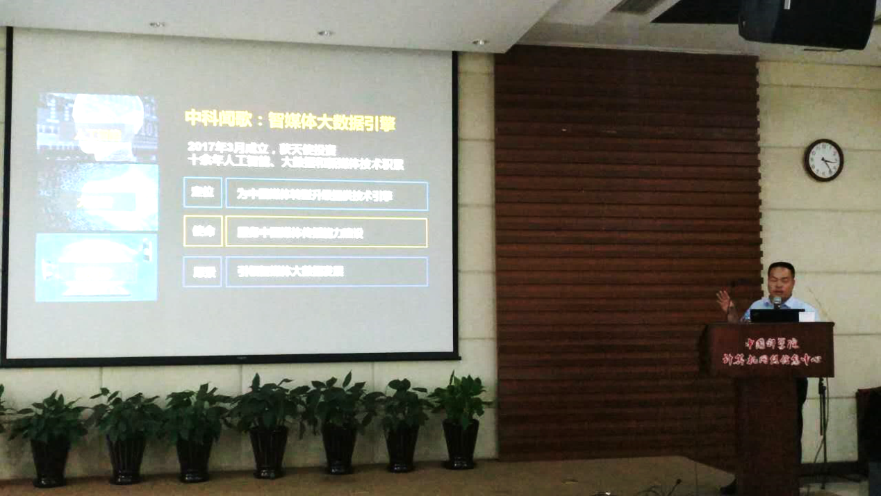 王磊作了题为《信念引领、技术驱动,助力实现引领智媒体大数据之梦》的报告。在报告中,王磊主要介绍了中科闻歌公司的创办历程、公司产品体系、公司的发展前景等。他指出,中科闻歌是一个非常年轻的公司,今年3月份刚刚成立,团队的平均年龄也只有三十出头。王磊认为,国家鼓励科研人员创业出台的多项政策举措、研究所的支持,以及获得天使基金投资,这些是中科闻歌公司顺利创立的前提条件,而科研团队在该领域十余年的积累和员工的积极努力,是科研人员创业的坚实基础,是公司发展的重要筹码。