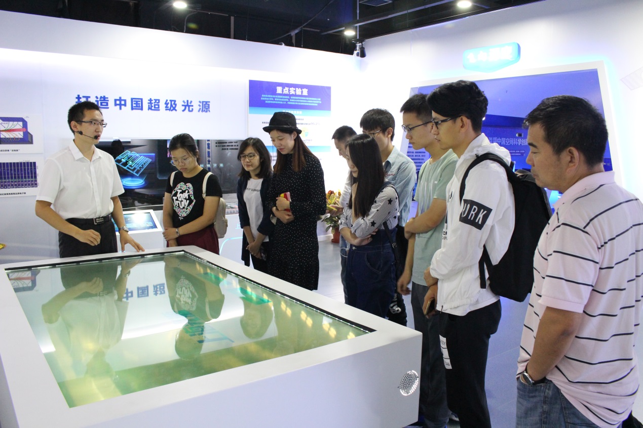 在讲解员引领下,党员们参观了世界最大单口径球面射电望远镜“FAST”、量子科学实验卫星“墨子号”、“科学号”科考船等装置模型,了解到中科院各个兄弟院所在深空、深海、深地、网络空间安全和国防科技等最新最前沿的科学进展。参观过程中,党员们认真聆听讲解,并不时与讲解员展开交流讨论,还用手机拍下一个个令中国人自豪的大科学装置和沙盘模型。