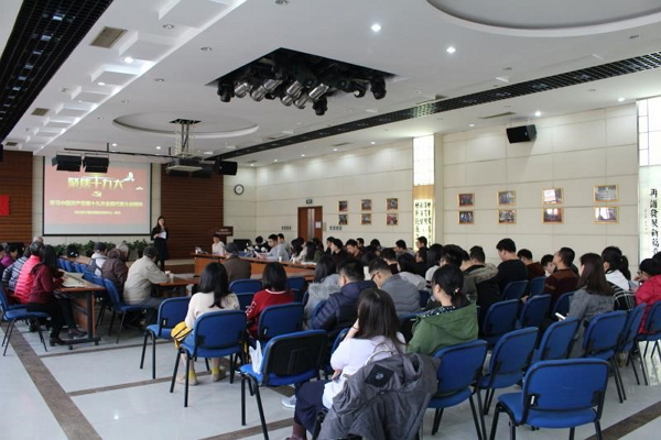 会上,韩华向大家作了《聚焦十九大——学习中国共产党第十九次全国代表大会精神》的报告,报告从十九大的主题和主要成果、关于习近平新时代中国特色社会主义思想、中国特色社会主义进入新时代、过去五年工作和历史性变革、我国社会主要矛盾的变化、两个一百年奋斗目标的战略部署、加快建设创新型国家、坚定不移推进全面从严治党等八个方面对十九大报告进行解读。报告结束时,韩华向与会人员分享了部分心得体会:十九大报告以“大道之行、天下为公”八个字收尾,与报告开篇时的“不忘初心、牢记使命”这八个字前后呼应,一脉相连,道出了中国共产党人的初心和本色、使命与担当,也道出了中国共产党人的理想与追求,可以说这16个字直达人心,具有强大的感召力、向心力、凝聚力。
