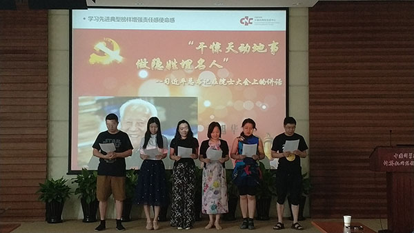 为了进一步丰富学习形式,大会的第三部分以习近平总书记重要讲话精神为指引,开展了纪念“科学的春天40周年”主题党日活动。各党小组前期通过党小组会学习先进典型与优秀个人事迹,并在本次大会上以诗朗诵、演讲、主题汇报等丰富多彩的形式展示了学习成果。全体党员通过微信投票的方式参与互动,评选出最受欢迎的节目。这样的学习与汇报模式,党员同志不仅学得有兴趣,记得牢,更切实增强了创新为民的责任感、使命感。