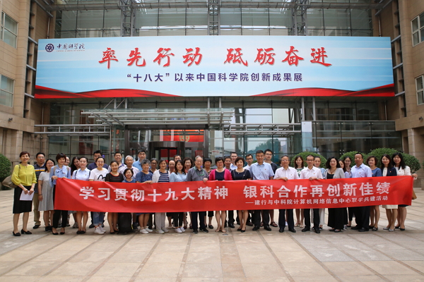 为更好的学习贯彻党的十九大精神,6月22日,计算机网络信息中心机关党支部联合建行北京中关村分行开展联学共建活动——参观“率先行动砥砺奋进—十八大以来中国科学院创新成果展”。中心党委书记韩华、建行中关村分行党委书记、行长栾文生及联学共建单位40余名党员参加此次活动。