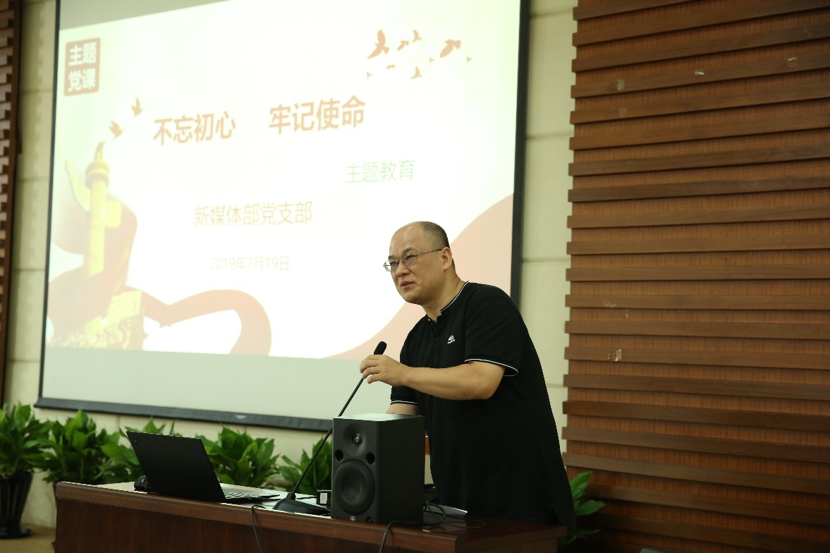 7月19日,新媒体部党支部和新媒体部联合开展“不忘初心、牢记使命”主题教育专题党课学习。会议由新媒体部主任王闰强主持,支部党委联系人佟钊、新媒体部党支部全体员工共50人参加。