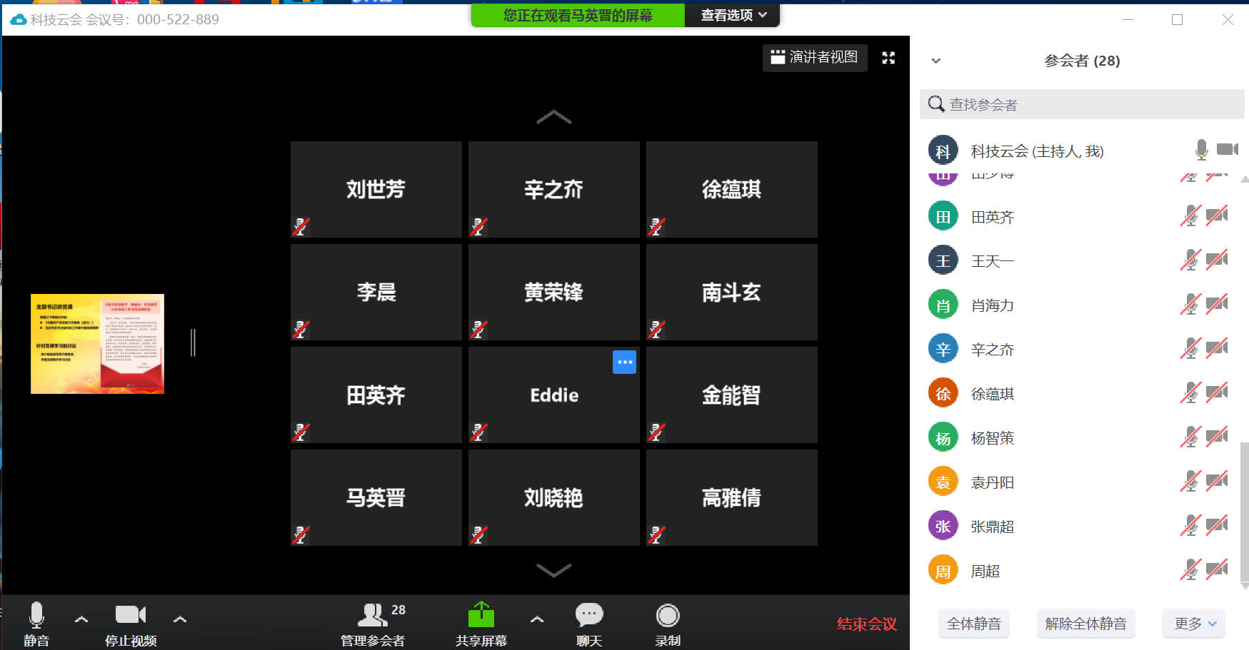 会上,支部书记金钟对本次会议的主要背景做了简要介绍,并向周园春简要介绍了支部在抗击疫情期间的党建和业务工作开展情况。周园春对智算战略党支部的工作进行了点评,对下一步的工作提出了几点建议和要求,并希望全体党员在工作中充分发挥先锋模范作用,为中心多做贡献。全体党员也一致表示会努力工作,为中心的发展添砖加瓦。