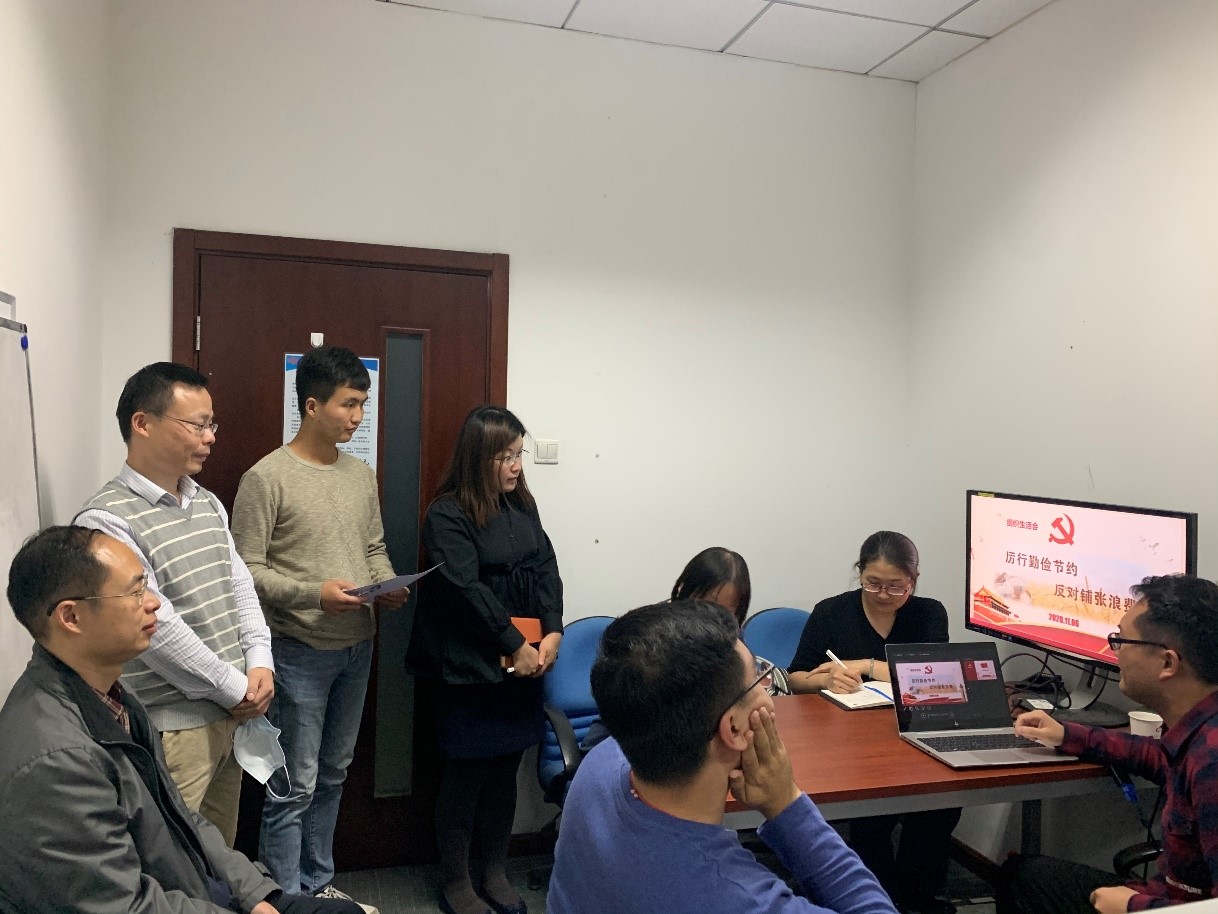根据支部书记周旭在党员大会上带领全体党员学习的《党政机关厉行节约反对浪费条例》、《关于厉行节约反对食品浪费的意见》等的规定和要求。网信创新党支部统筹部署和安排,以党小组为单位,分别召开了以“厉行勤俭节约,反对餐饮浪费”为主题的组织生活会,开展了“批评和自我批评”,深入谈心交流,广泛听取意见。