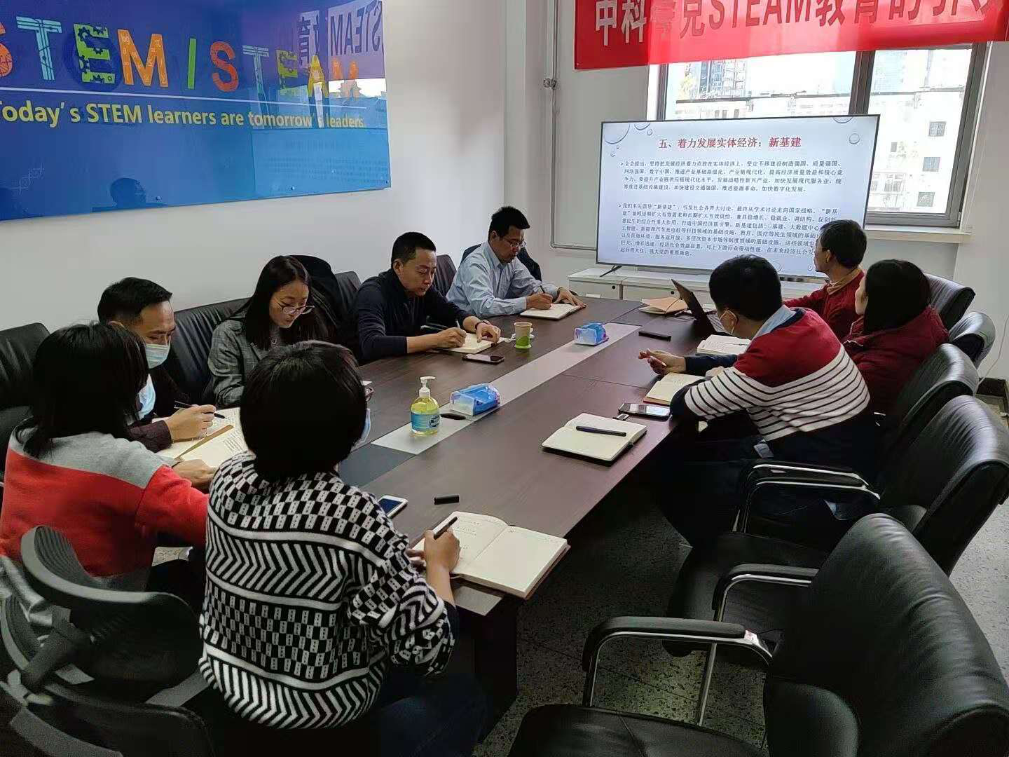 第一党小组韩雪松带领大家学习了党的十九届五中全会公报和《规划建议》原文,并对全会提出的科技创新战略进行了解读分享,齐勇做了主题分享,他强调深入学习贯彻党的十九届五中全会精神,要认真按照“读原著、学原文、悟原理”的方法,在学懂、弄通、做实上下功夫,推动学习贯彻工作入脑入心、走深走实,各企业党员要深入学习领会《规划建议》提出的新理念、新思路、新举措,结合企业发展方向,围绕国家战略部署提升国有企业的科技创新能力。