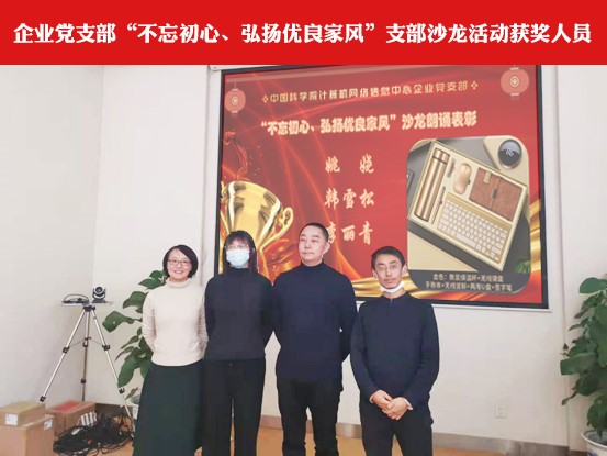 党课后,支部就近期开展的党员自评、互评、民主评议党员、谈心谈话、党小组民主生活会、批评与自我批评等情况进行了通报和总结,组织全体党员同志现场进行了党员民主测评,同时为获得企业党支部“2020年度您最喜爱的优秀党建新闻稿”网络评选获奖人员和“不忘初心、弘扬优良家风”支部沙龙活动获奖人员进行了颁奖。