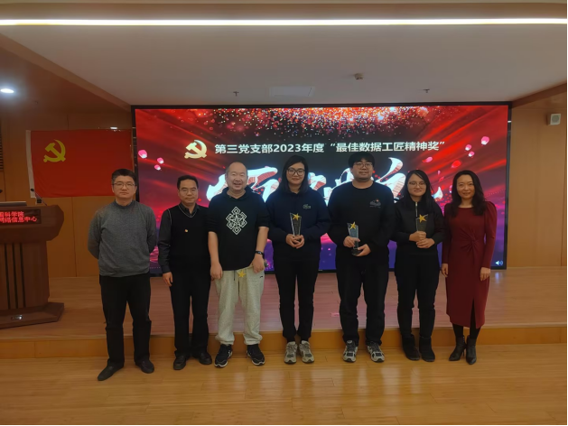 “数据工匠精神奖颁奖”环节,周园春、孙健英、沈志宏分别为2023年度四位获奖者“最佳深耕精神奖”刘宁、“最佳奋斗精神奖”王诚瑞、“最佳利他精神奖”李坤、“最佳卓越精神奖”王露笛颁发奖杯奖品并合影留念。