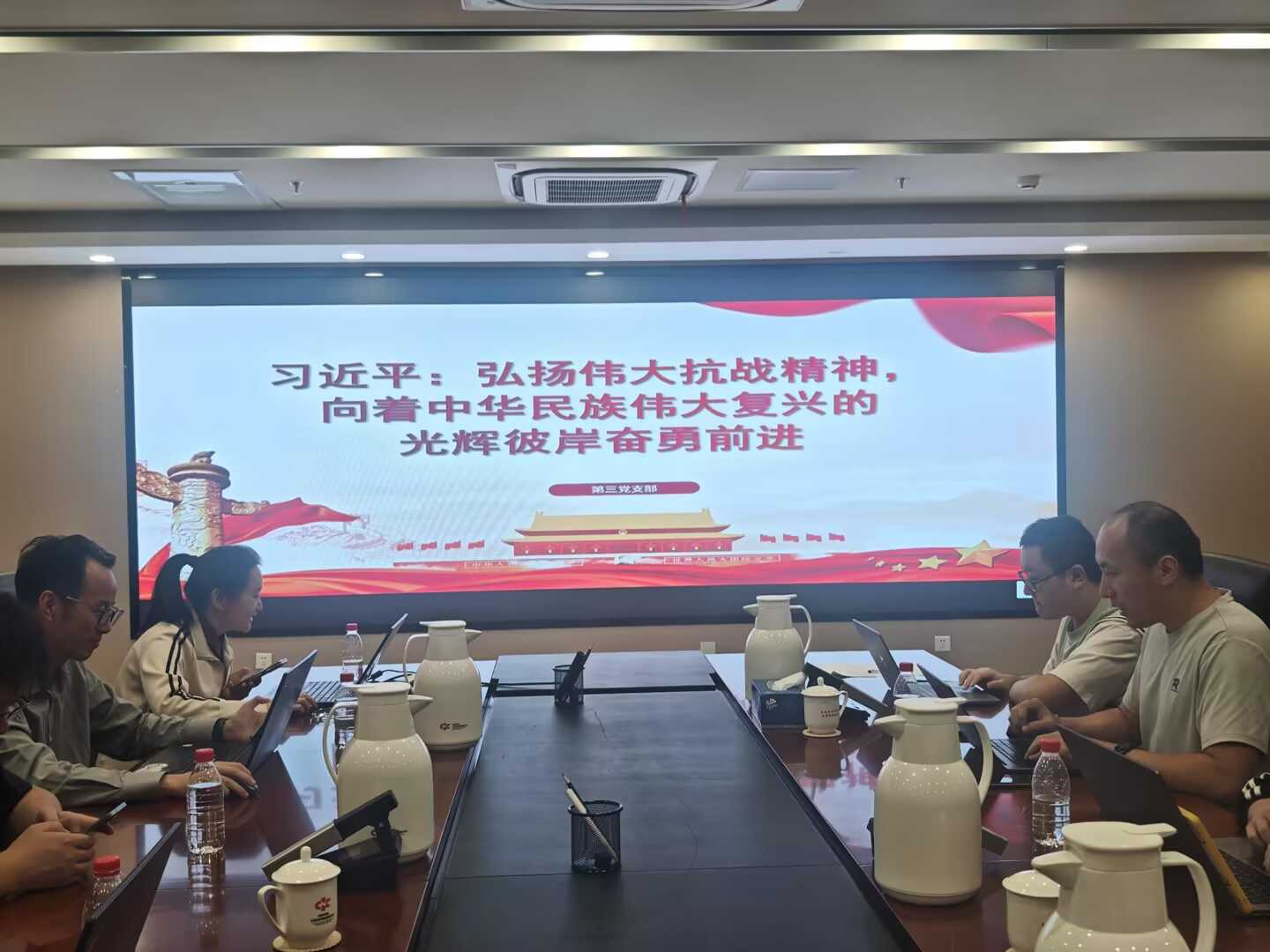 大家围绕《纪念中国人民抗日战争暨世界反法西斯战争胜利80周年主题学习》共同开展研学,共同回顾了从1931年日本发动侵华战争到1945年最终胜利的那段充满奋斗和反抗的历史。周小华同志向大家发出倡议,希望大家在学习和工作中,能够弘扬伟大爱国主义精神和抗战精神,以科技创新为中华民族伟大复兴贡献自己的力量。