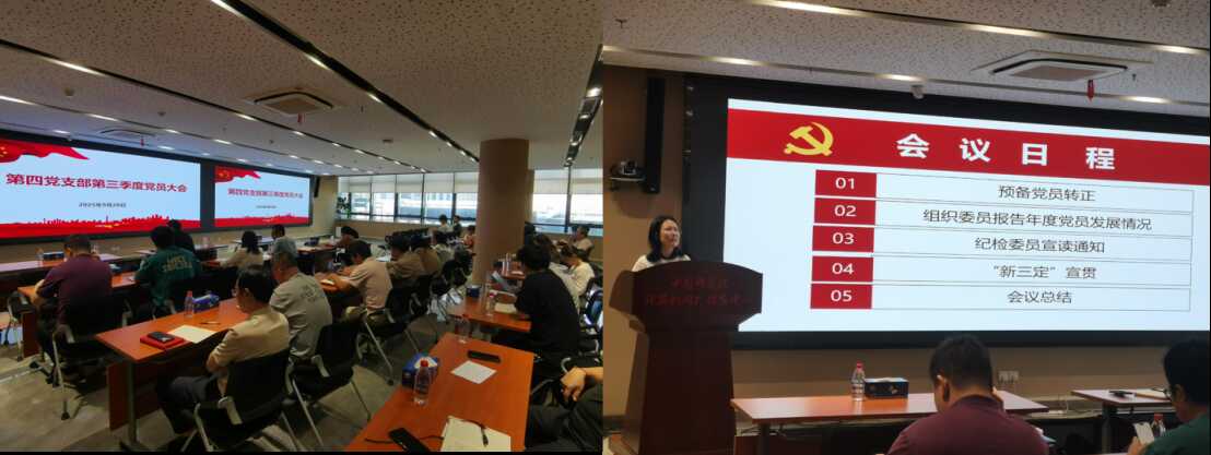 9月28日,第四党支部召开第三季度党员大会,围绕预备党员转正、年度党员发展情况通报以及传达学习“新三定”精神等议题展开。会议由支部副书记施卓敏同志主持。