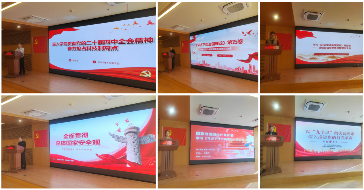 11月27日,第三党支部召开第四季度支部大会,共同围绕理论学习等工作展开深入交流与部署,全体党员参加,中心党委委员、副主任周园春出席,会议由党支部书记沈志宏主持。