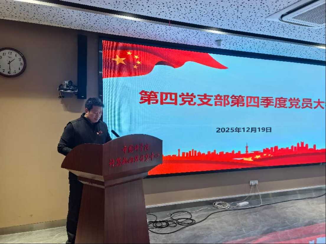 12月19日,第四党支部召开年终总结大会暨民主评议会。本次会议全面总结年度党建工作,推进党员发展与评议工作,并深入开展专题理论学习。会议由党支部书记周小军同志主持,中心党委书记孙德刚同志讲授专题党课。