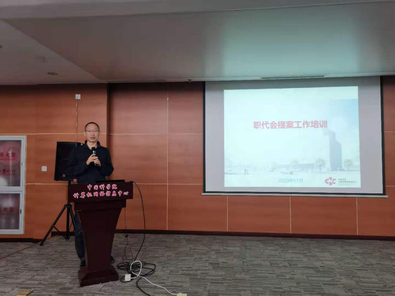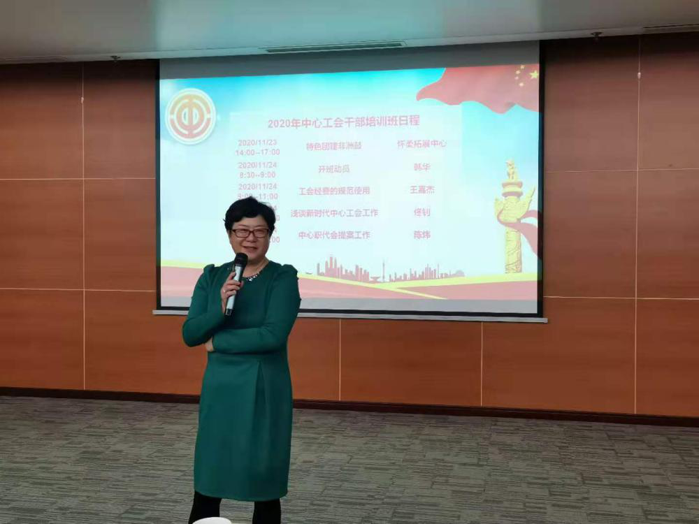 中心工会常务副主席佟钊以《浅谈新时代中心工会工作》为题,从新时代的工会工作、2020年中心工会工作完成情况、十九届五中全会精神学习和工会常识学习分享等4个方面对当前工会工作的形势、中心工会工作的成绩进行了总结,并用对比的方式梳理了工会基本知识;职代会副主席陈炜以《中心职代会提案工作管理办法》为主线,向参训人员再次系统的介绍了提案工作的重要性,同时就2019年提案工作中提案落实进行了汇报。
