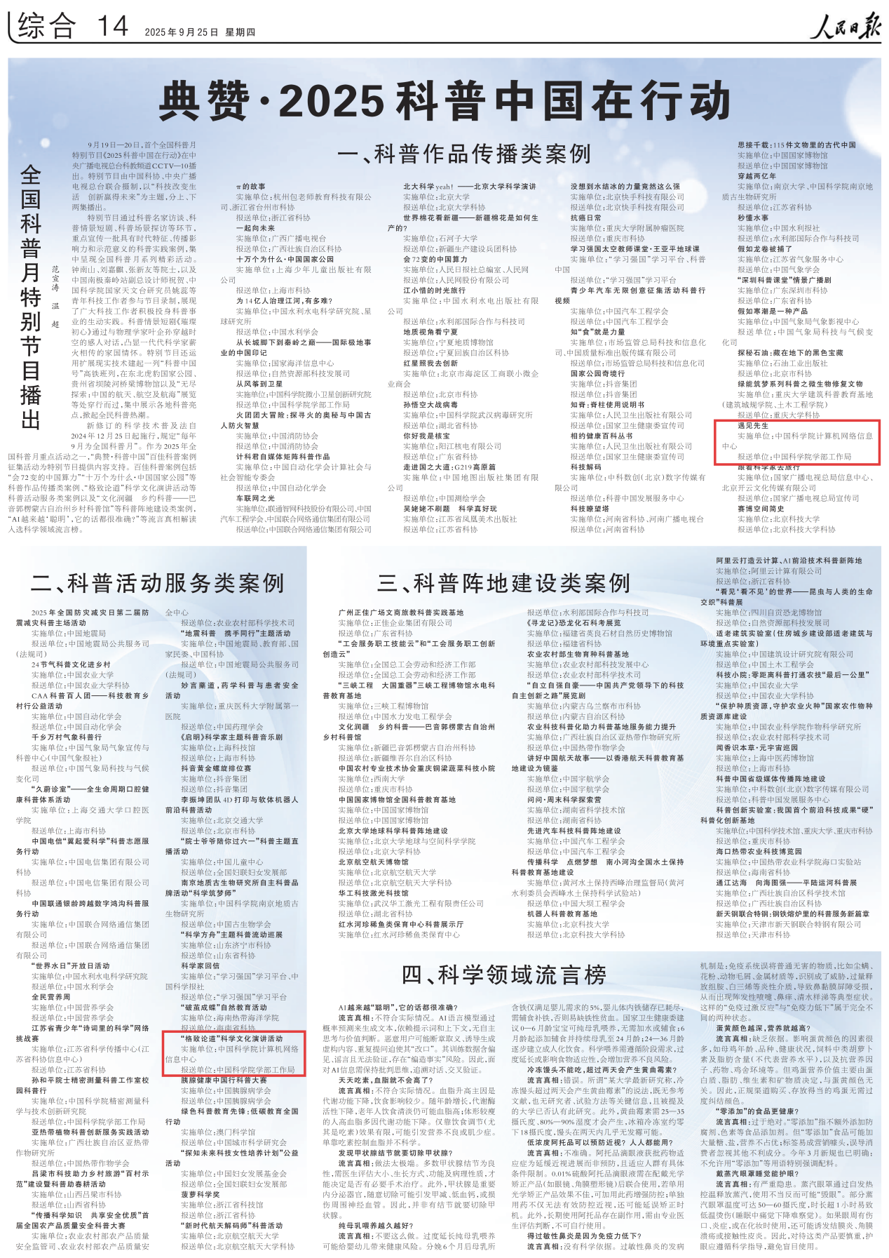 “典赞·科普中国”活动由中国科协牵头主办,是全国科普月的重要组成部分,旨在评选并展示科普领域的优秀成果和亮点经验。本次共评选出100个科普典型案例,分为科普作品传播类、科普活动服务类和科普阵地建设类三大类别。《人民日报》于9月25日14版以《典赞·2025科普中国在行动》为题,刊登了2025年百佳科普案例评选结果。