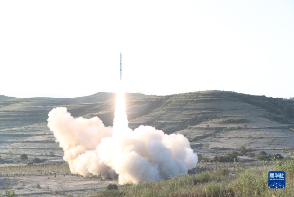 2022年9月25日6时55分,我国在太原卫星发射中心使用快舟一号甲运载火箭,以“一箭双星”方式,成功将试验十四号和试验十五号卫星发射升空,卫星顺利进入预定轨道,发射任务获得圆满成功。新华社发(郑斌 摄)